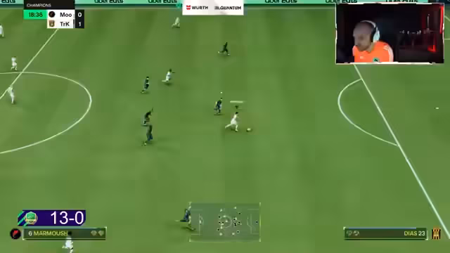 01:37:36Im weiteren Spielverlauf feiert der Streamer seine eigenen Tore und 'besten Angriffe seines Lebens', insbesondere mit Marmoush, während er gleichzeitig über eine Benachteiligung durch das Spiel klagt, da seine Abwehr 'tot' sei. Trotz eines klaren Sieges von 10:3 fühlt er sich ungerecht behandelt. Nach dem Spiel geht er kurz auf sein Team ein, lobt Marmoush, und erwähnt, dass er noch viele Spiele hat und nun Toilette gehen muss, bevor er fortfährt.