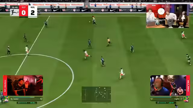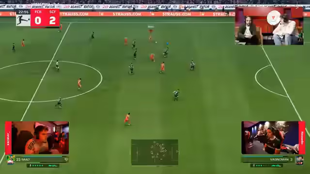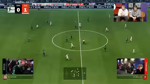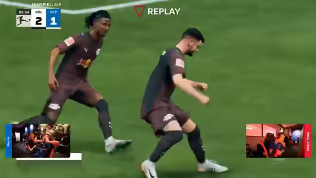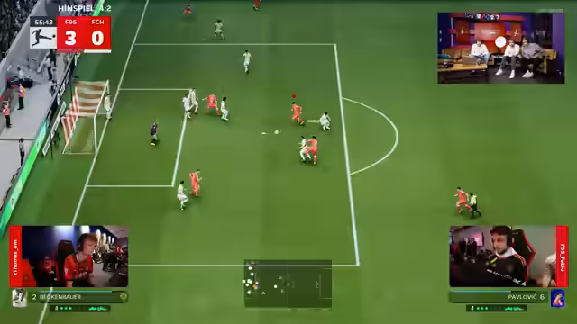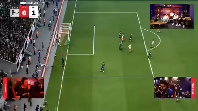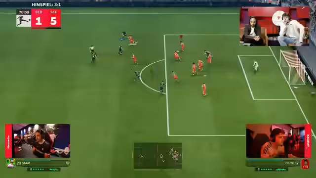 04:58:20Im Spiel zwischen RB Leipzig und SC Paderborn hält Alihan eine komfortable Führung gegen Morris, während Nasada seine Serie mit einem 5:1 gegen Koray fortsetzt. Letzterer zeigt kurzzeitig Hoffnung auf ein Comeback, kann jedoch nicht entscheidend kontern. Die Moderatoren diskutieren taktische Fehler der Coaches und die Bedeutung der Aufstellungen. Gegen Ende wird das Multiview-Feature genutzt, um beide Spiele parallel zu verfolgen, wobei der Chat sich mehr für die Bayern-Partie interessiert.