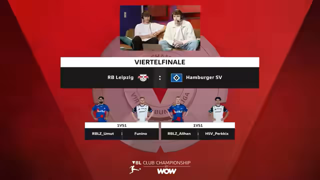 04:15:59Die Halbfinal-Paarungen stehen fest: FC Bayern gegen SC Freiburg sowie RB Leipzig gegen SC Paderborn. Während Leipzig als klarer Favorit gegen Paderborn gilt, wird das Duell Bayern-Freiburg als offener eingestuft. Parallel startet ein Giveaway mit drei WoW-Geschenkkarten für Zuschauer, die das spezielle Emote im VBL-Channel nutzen. Die Sieger werden live gezogen.