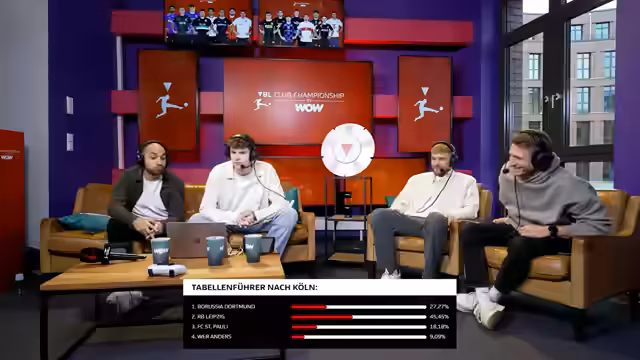 00:12:06Der dritte Showdown der VBL Club Championship beginnt live aus Köln mit den besten 16 Teams nach der Online-Phase. Teams wie der FC Bayern München mit einer starken Bilanz von 18 Punkten sind vertreten, während Leverkusen überraschend nur sieben Punkte erreichte. Die Gesamttabelle zeigt Dortmund als aktuellen Tabellenführer, gefolgt von Leipzig, Gladbach und Stuttgart. Die Diskussion dreht sich um mögliche Favoriten, wobei Leipzig aufgrund von Umuts Debüt und bestehender Erfahrung als Titelkandidat gehandelt wird.