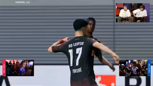 03:14:52Bayerns Fuki setzt seine starke Leistung fort und erhöht auf 4:1 gegen St. Paulis Blake. Die Moderatoren heben Furkys Fähigkeiten im Umgang mit 99er-Karten und seine Offensivstrategien hervor. Das Spiel endet 6:1 für Bayern, was Fuki als entscheidenden Akteur etabliert. Gleichzeitig läuft Leipzig gegen HSV weiterhin ausgeglichen (2:2), wobei Johnny die Chancenverteilung und defensiven Schwächen beider Teams analysiert.