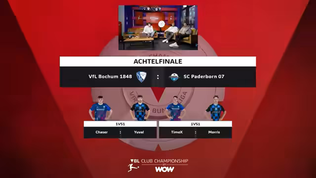 01:41:20Während des Streams werden Interviews mit Spielern wie Umut von RB Leipzig geführt, der sich selbstbewusst für das Turnier zeigt und den VBL-Modus als seinen Stärkebereich bezeichnet. Parallel starten die ersten Spiele, darunter Stuttgart gegen HSV. Experten tippen nach intensiver Diskussion knapp auf Hamburg, insbesondere aufgrund von Perkix' aktuell starker Performance. Beim zweiten Spiel (Bochum vs. Paderborn) spricht sich Ebro klar für Paderborn aus und betont deren potenzielle Überraschungsrolle. Der Chat stimmt ab, wobei Bochum knapp favorisiert wird, doch das Studio-Team entscheidet sich für Paderborn.