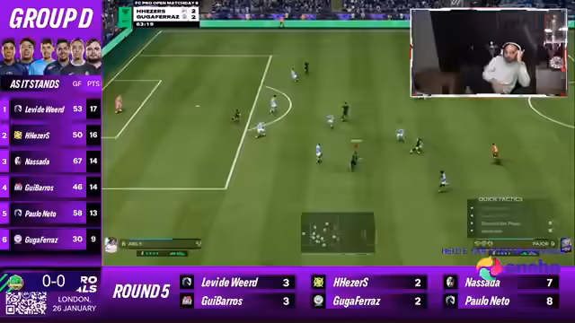 02:12:33Here the streamer turns to the upcoming qualifier match where Neto will face Guy Baros describing it as a pivotal encounter for the group’s final standings. He explains that Neto needs to lose points to open a path for Nasada and that the direct duel between Neto and Baros could determine who advances. The analysis includes how many points each player currently holds the importance of goal difference and the potential scenarios that could unfold depending on the match outcome.