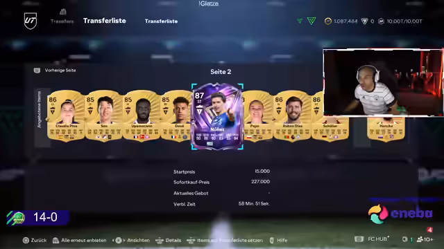 02:00:14Der Streamer entscheidet sich, seine Konsole neu zu starten, in der Hoffnung auf eine "Wunderheilung" seiner technischen Probleme, die zu einem "totes Spiel" führen. Er ist frustriert über die Leistung seines Teams und insbesondere von David Nunes, den er verkaufen möchte. Trotz der schlechten Performance und der roten Karte, die er im Spiel erhalten hat, stellt er fest, dass er mit dem Verkauf von Nunes sogar einen Gewinn von 240.000 Coins erzielt hat. Er ist überrascht, da er eigentlich mit einem Verlust gerechnet hatte. Die Diskussion über die Effektivität von bestimmten Karten und Evo-Upgrades geht weiter. Die Herausforderungen des Gameplays, die fehlende Chemie einiger Spieler und die Schwierigkeit, Tore zu erzielen, bleiben zentrale Themen. Er beendet den Stream mit der Erkenntnis, dass er trotz aller Schwierigkeiten und Frustrationen einen unerwarteten finanziellen Erfolg erzielt hat.