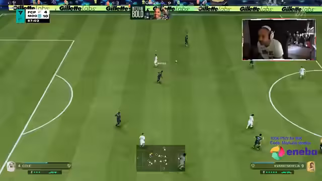 03:33:33Der Streamer spielt gegen einen als 'besten Gegner der Welt' beschriebenen Spieler und beschreibt dessen Spielstil als extrem fordernd. Der Gegner verteidigt sehr intelligent und blockiert konsequent Passwege. Der Streamer merkt an, dass man solche Gegner nicht komplett aus dem Spiel nehmen kann und sucht nach Wegen, seine Taktik anzupassen. Er lobt die defensive Leistung und merkt an, dass einige Spieler wie Theo Mendes im Spiel stark überbewertet sind, während andere wie Bale eine absolute Klasse haben.