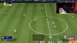 02:41:06Im Spiel wird ein zufälliges Tor nach einem Konter gefeiert. Der Streamer stellt fest, dass er sich konzentrierter schlechter spielt als im Automodus. Die Verteidigung des Gegners wird als inkompetent bewertet. Die Besonderheiten bestimmter Spieler wie 'daik' werden gelobt, deren Fähigkeiten die Statistiken übertreffen. Die eigene Taktik wird als überlegen beschrieben, da die gegnerischen Formationen komplett aufgefressen werden.