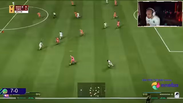 00:07:40Während der Spiele diskutiert der Streamer verschiedene Gameplay-Taktiken. Er erklärt, wie man gegen starke Gegner mit künstlicher Intelligenz (AI) Team Pressing effektiv einsetzen kann, um Druck aufzubauen. Gleichzeitig bewertet er Spieler wie Pfeiffer als den besten rechten Mittelfeldspieler, den er je gespielt hat, und kritisiert Maradona als 'washed' und überteuert, da er für seinen Preis zu langsam und ineffektiv sei.