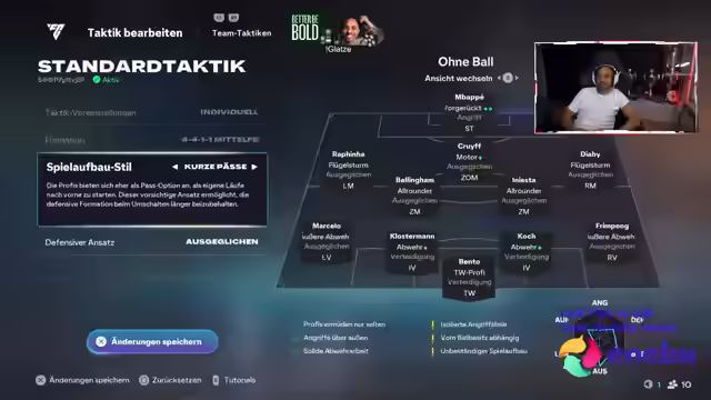 02:19:55Die 4-4-1-1 und 4-4-2 Taktiken gefallen, aber es wird noch ein Footdraft benötigt. Der Rush-Modus ist gefloppt. Es wird über eine 4er-Kette im Mittelfeld gesprochen, die sehr gut aussieht. Es wird überlegt, ob Marcelo LM spielen kann. Die Teamchemie passt, aber die IV ist schlecht. Es werden viele Tore kassiert. Es wird überlegt, was der Gegner wieder macht. Es wird überlegt, den Flachschuss mehr zu nutzen und zu gucken, wo der OP ist. Mbappé ist mindestens 4 Millionen wert. Die 4-4-1-1 und 4-4-2 sehen beide unglaublich gut aus. Es wird überlegt, wie das Team für Pro-Leader aussehen könnte. Der Gegner wird auseinandergenommen. Es wird überlegt, wer der beste LV ist. Der Gegner schwitzt um sein Leben. Es wird über ein Video über Ibra und Schilden gesprochen. Es wird über Freistöße diskutiert und dass der Streamer der schlechteste Freistoßschütze ist.