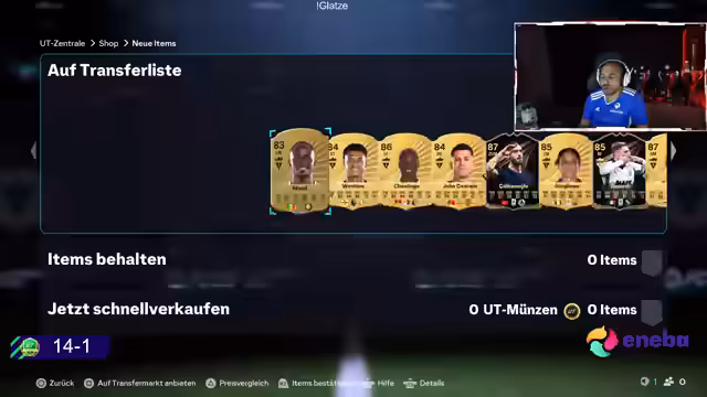 00:21:44Nach dem Öffnen eines weiteren Icon-Packs, aus dem er einen 'toten Spieler' zieht, äußert der Streamer seine Enttäuschung über die Qualität der gezogenen Karten. Er stellt fest, dass Fabian, ein fest eingeplanter Spieler, verschwunden ist und vermutet, dass er ihn versehentlich abgegeben hat. Er diskutiert über potenzielle Investitionen und lobt Hakan als einen der besten ZM-Spieler für seinen Preis, der im Wert steigen könnte. Es werden verschiedene Spieler wie Bissek und Jabinio bewertet, wobei der Streamer zögert, 100k für eine Evo auszugeben oder zu viele neue Spieler zu kaufen. Er versucht, mit den vorhandenen Spielern zu arbeiten und sucht nach passenden Playstyles. Die Diskussion dreht sich auch um die Effektivität von Goldkarten wie Saliba und Gusto, die das Team ergänzen sollen. Der Streamer plant, einige Spieler zu testen, um herauszufinden, wer im neuen Account gut funktioniert, und betont, dass er aktuell Coins sparen möchte, da der Markt sehr volatil ist.