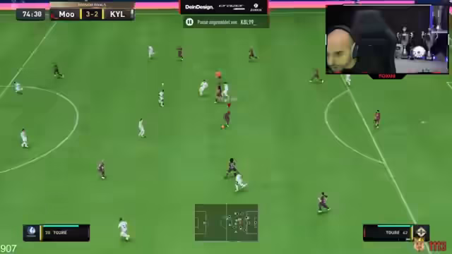 03:20:30Während des FIFA-Spiels beschreibt der Streamer seine taktische Herangehensweise, insbesondere gegen eine Fünferkette. Er nutzt eine 4-3-2-1-Formation mit ballbreiten Spielern und gibt an, dass es entscheidend ist, dass der rechte Stürmer defensiv verstärkt wird, um ein stabiles 4-4-2-System in der Defensive zu schaffen. Diese Taktik, die ihm in der Vergangenheit mehrere Siege in der Rivals-Series gebracht hat, solle ihm auch im bevorstehenden Turnier helfen, da sie ihm mehr Kontrolle über das Spiel verschafft.
