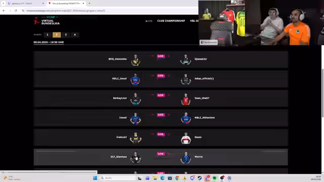 00:54:28Im Stream werden verschiedene Spiele der VBL-Grand-Final-Gruppenphase besprochen. Ein Fokus liegt auf dem Spiel Perkix gegen Lukas Official, das mit 6:3 für Official endete, und auf dem dramatischen Spiel De Ninho gegen Sanluka, das in die Verlängerung ging und erst nach 117 Minuten entschieden wurde. Nebenbei wurde auch das Elfmeterschießen von Sean gegen Dennis verfolgt. Diskutiert werden auch Vorhersagen für mögliche 0:3-Niederlagen in der Gruppenphase, wobei Musti, Kamal und Delinio als Kandidaten genannt werden.