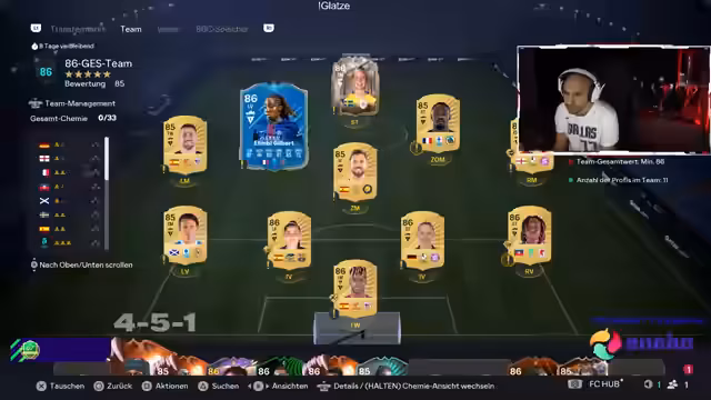 00:09:23Als alternative Strategie plant der Streamer, ein Icon Pack zu öffnen, in der Hoffnung, einen guten Stürmer zu ziehen, um die Lücke in seinem Team zu füllen. Er überlegt, wie er Openda Evo in sein Team integrieren könnte und welche anderen starken Spieler es gibt. Er betont, dass er sich keine Kopfschmerzen wegen der Teamzusammenstellung machen will, da er erwartet, etwas Krasses zu ziehen, was alle Probleme lösen würde. Er erwähnt auch, dass er Spieler wie Voltemade und Xavi Simons im Auge hat und überlegt, wie er diese in sein Team einbauen könnte. Er muss auch Spieler für SBCs abgeben, um das Icon Pack zu finanzieren, und stellt fest, dass er viele 87er und 86er Spieler im Verein hat.