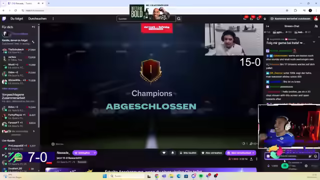01:49:58Der Streamer freut sich über die erzielten Ergebnisse und lobt einen schönen Konter. Er stellt fest, dass seine einzigen drei Gegentore durch Anstoß, Ecke und Anstoß entstanden sind, trotz der Patches. Er vergleicht die Abfolge von Anstoß und Ecke mit einer Telefonnummer oder Sektoren aus Filmen. Es wird kurz über den Film Transformers und die Vorliebe der Mutter des Streamers dafür gesprochen. Er kritisiert, dass der Anschluss komplett beschissen ist, hofft aber, dass er weniger kassiert. Der Streamer erklärt, dass er zufrieden ist, solange die meisten Spieler keine Tore kassieren. Er lobt seine Formation und wie er die Gegner "shittet". Es wird über die Playlist und mögliche Abgaben von Mbappé diskutiert. Der Streamer erwähnt einen BQ Monitor und dass er heute ins Gym geht. Er plant, direkt mit der Weekend League zu beginnen und hat mehrere Accounts. Er sucht noch Accounts zum Zocken und erwähnt SBCs.