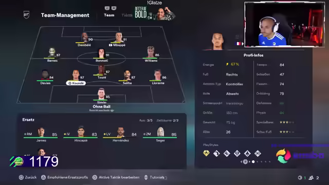09:18:21Es wird die Möglichkeit diskutiert, mit dem Main-Team 15-0 zu holen, abhängig von der Gefühlslage. Das Spielen mit verschiedenen Accounts wird als unterhaltsamer empfunden. Finesse-Schüsse mit Diani werden als besonders effektiv hervorgehoben. Es wird betont, wie wichtig es ist, Crossplay zu deaktivieren, um Hackern vorzubeugen. Die neue Erfindung im Spiel, die Torwart-Bewegungen beeinflusst, wird kritisiert. Es wird festgestellt, dass das Spiel seit dem Patch schwerer geworden ist, Tore zu erzielen. Die aktuelle Formation wird als nicht optimal empfunden, da die Abstände nicht stimmen und es an Anspielstationen mangelt. Pina wird für ihre Leistung gelobt und es wird spekuliert, dass Umut aufgrund von Pinas Stärke auf der Bank sitzen wird. Es wird die Vermutung geäußert, dass die Weekend League aufgrund des Matchmakings leichter ist als im Vorjahr. Abschließend wird über Burnout-Erscheinungen nach langen Spielphasen gesprochen und die veränderte Verteidigungsweise der Gegner thematisiert.