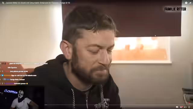 01:59:48Der Streamer wechselt das Thema und beginnt mit der Besprechung einer neuen Folge von "Familie Ritter". Die Folge behandelt unter anderem einen Streit zwischen Jasmin Ritter und Oma Karin sowie einen Einbruch in einen Tierpark, in den Karins jüngster Sohn Christopher verwickelt sein soll. Es wird über die Zustände in Karins Aquarium diskutiert, in dem angeblich Fische unter fragwürdigen Bedingungen leben. Karin Ritter gerät in Stress, als sie mit den Vorwürfen des Tierparkeinbruchs konfrontiert wird. Sie beschuldigt ihren Sohn Christopher und dessen Kumpel, Tiere gestohlen und in ihre Wohnung gebracht zu haben. Die Situation eskaliert, als Karin vor laufender Kamera ihre Enkelin Jasmin des Mitwissens und der Beteiligung am Tierparkeinbruch bezichtigt. Es stellt sich heraus, dass auch ein Komplize namens Marc Kersten beteiligt war. Die Tiere wurden in einem Rucksack transportiert und zu Frau Ritter in die Wohnung gebracht. Jasmin wollte im Tierpark ein Praktikum machen. Die Polizei wusste noch nichts von der Beteiligung von Jasmin, bis Karin sie vor laufender Kamera verriet. Es geht auch um einen Raubüberfall, bei dem Jasmin, Christopher und Mark Kersten einen Obdachlosen geschlagen und bestohlen haben sollen. Karin packt über ihre Familie aus und verrät Details über deren Vergehen, was zu Spannungen führt.
