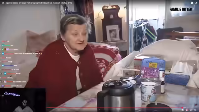 02:00:19Der Streamer reagiert auf das Video 'Familie Ritter'. Die Familie steht vor einer Zwangsräumung. Enkeltochter Jasmin und ihr Freund Christopher haben in einen Tierpark eingebrochen, Tiere gestohlen und diese in die Wohnung der Oma Karin gebracht. Die Oma ist amtierend und zeigt die Tiere. Später stellt sich heraus, dass Jasmin und Christopher mit einem Komplizen auch an einem Raubüberfall auf einen Obdachlosen beteiligt waren. Oma Karin verrät Jasmin vor laufender Kamera an die Polizei, was zur Belastung ihrer Beziehung führt.