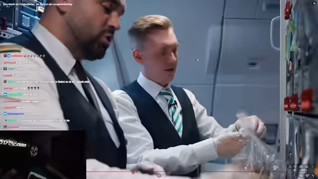 02:05:12Während des Nachtdienstes spricht der Streamer über die Pausen der Crew, die in speziellen Betten an Bord verbracht werden. Ein wichtiger Sicherheitspunkt ist die Regel, dass Piloten unterschiedliche Mahlzeiten erhalten, um ein mögliches Nahrungsmittelvergiftungs-Szenario zu verhindern. Auch die Verdienstmöglichkeiten als Flugbegleiter werden kurz erwähnt, bleiben aber unkonkret.