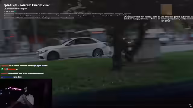 00:41:40Nach dem Ende der Russian Fals wechselt der Streamer zu einer Folge der Doku-Serie 'Speed Cops'. Er begleitet die Beamten bei der Kontrolle eines Fahrers, der bei illegalem Kfz-Rennen mit 160 km/h innerorts erwischt wurde. Die Szene, bei der dem Fahrer Führerschein, Auto und Handy beschlagnahmt werden, wird detailliert gezeigt und kommentiert.
