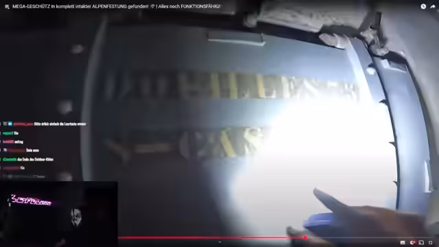 01:17:10Nachdem die Abenteurer einen extrem engen Lüftungsschacht passiert haben, gelangen sie in einen gut erhaltenen Maschinenraum unter der Festung. Der Streamer zeigt sich beeindruckt von dem Originalzustand der Anlage, inklusive Lackierung und Fliesenboden. Sie erkunden verschiedene Bereiche wie eine Küche, einen Kommandoraum und Munitionsräume, wobei der Streamer dessen Bedeutung für die Besatzung erklärt. Höhepunkt ist die Entdeckung eines intakten Geschützes mit zugehöriger Mechanik, das die gesamte Anlage vervollständigt.
