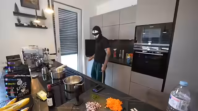 02:34:20Der Stream beginnt mit der Zubereitung von Spaghetti Bolognese. Es kommt jedoch schnell zu unvorhergesehenen Komplikationen, da das Rezept zwei Töpfe vorsieht, der Streamer aber nur einen zur Verfügung hat. Als das Kochen der Bolognese rund 50 Minuten in Anspruch nehmen soll, denkt er über einen möglichen Abbruch nach und eine Pizza zu bestellen. Dennoch entscheidet er sich dafür, das Gericht fertig zu kochen, da er lange köchelnde Gerichte sehr mag und diese ihm eine Art 'Mutter-Vibes' vermitteln.