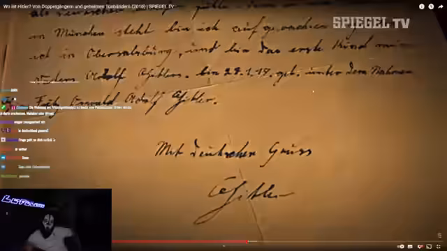 04:20:41Der Streamer kündigt an, eine Adolf Hitler-Dokumentation anzusehen und fragt den Chat nach ihrer Meinung. Er erwähnt, dass er versehentlich eine zuvor gesehene Verschwörungs-Doku über Hitler nicht gespeichert hat, aber eine andere gefunden hat. Er begrüßt Lea, die ein Beziehungsproblem schildert: Sie ist noch nicht von ihrem Ehemann geschieden, lebt aber in einer neuen Beziehung. Sie gesteht, ihren neuen Partner mit einem Mann betrogen zu haben, jedoch ohne direkten sexuellen Kontakt, sondern durch eine andere sexuelle Handlung. Sie erklärt ihre Unzufriedenheit mit ihrer Situation, da sie hauptsächlich für ihre Kinder arbeitet und sich von der Gesellschaft ungerecht behandelt fühlt. Der Streamer wechselt zu der angekündigten Hitler-Doku mit dem Titel 'Wo ist Hitler von Doppelgängern und geheimnisvollen Tonbändern' und stellt dem Chat zwischendurch Allgemeinwissensfragen.