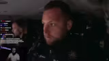 01:25:37Der Stream wechselt zu einer Reaktion auf die Dokumentation "Spiegel TV zwischen Promille und Pöbelein". Die Beamten Kai und Henry patrouillieren durch Kiel. Ihr erster Einsatz führt sie zu einem Mann, der mit Bierflaschen nach Bürgern wirfen soll. Trotz intensiver Suche können sie den Täter zunächst nicht finden, bis zwei Zeugen den entscheidenden Hinweis geben, dass sich der Gesuchte auf einem Aldi-Parkplatz befindet. Beamte sprechen den Mann ruhig und professionell an, was vom Streamer als sehr coole Taktik gelobt wird.
