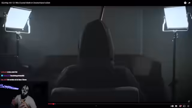 01:59:37Die Dokumentation schildert den Fall von Dominik, der aus einem guten Elternhaus stammt und im Alter von 14 Jahren an Silvesterabend mit Crystal Meth in Kontakt kommt, als ein Drogendealer ihm und seinen Freunden anstelle von Gras Crystal Meth anbietet. Der Konsum beginnt aus Spaß, wird aber schnell zur Gewohnheit. Zunächst wird die Droge gezogen, später geraucht und geschluckt, bis schließlich der intravenöse Konsum beginnt, um die gewünschte Wirkung zu erzielen. Mit 15 Jahren spritzt Dominik bereits Crystal Meth. Der Streamer zeigt sich entsetzt darüber, dass ein Drogendealer 14-Jährigen Crystal Meth verkauft und somit deren Leben zerstört.
