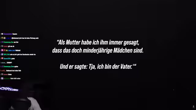 00:53:27Am späten Abend werden zwei Männer ohne Fahrschein im Zug kontrolliert. Einer von ihnen ist aggressiv und alkoholisiert, hat keinen Ausweis und bleibt unkooperativ. Die Beamte stellen fest, dass der Mann bereits 50-fach polizeibekannt ist, mehrfach in Haft saß und schwere Straftaten wie Raub und gefährliche Körperverletzung begangen hat. Wiederholt wird er wegen seines aggressiven Verhaltens aus dem Bahnhof verwiesen, taucht aber immer wieder auf. Der Streamer diskutiert im Chat darüber, ob er als Polizist korrupt würde und denkt darüber nach, wie es sein müsste, diesen Job jeden Tag zu erledigen.