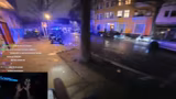 02:38:30In Berlin-Neukölln eskaliert die Situation massiv. Der Streamer filmt, wie Personen Raketen werfen und explodieren lassen, was von der Polizei als gefährlich eingestuft wird. Er sieht einen Brand an einer Aldi-Filiale und Zeugen, wie eine Person, die für die Explosion einer Kugelbombe verantwortlich scheint, flieht. Die Situation spitzt sich derart zu, dass der Streamer und sein Begleiter die Polizei um Schutz bitten, die sie begleitet. Währenddessen brennt in der Nähe ein Auto, was die angespannte Stimmung unterstreicht.