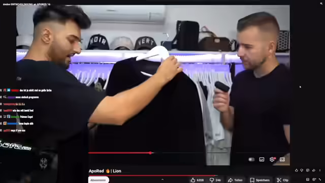 03:35:24Der Streamer geht auf ApoReds Zusammenarbeit mit der deutschen Modefirma Vibe ein. ApoRed war für die Vermarktung zuständig und ließ angebliche Designs eintragen. Die Firma investierte über 60.000 Euro in die Produktion, doch das Unternehmen scheiterte. Da sich die Zielgruppe von ApoReds Anhängern nicht an hochwertige Produkte gewöhnt hat, blieben die Waren unverkäuflich. Die Produktion wurde stark reduziert und verschwand aus dem Handel, wodurch die hohen Kosten nicht gedeckt werden konnten.