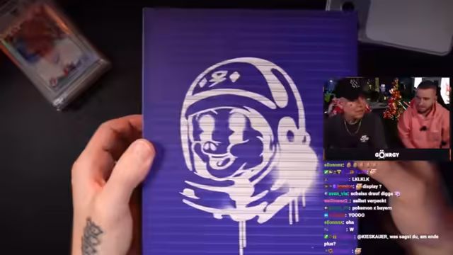 00:14:59Tabak überreichte Monte drei Geschenke als Dank für die Einladung zum Stream und das anstehende Winter-Event. Darunter befand sich ein signiertes Bayern-Trikot von Thomas Müller, eine seltene Musiala-Unterschriftenkarte (Topps Fractor) und eine extrem limitierte One-of-One Pokémon-Kunstkarte der Marke 'Piggy Banks', die in den USA große Bekanntheit genießt und von Persönlichkeiten wie Lewis Hamilton gesammelt wird. Die Pokémon-Karte wurde als besonders wertvolles Sammlerstück hervorgehoben, das nur durch ein Lotteriesystem erhältlich ist.