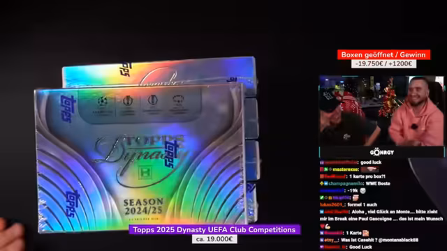 00:03:00Der Stream begann mit einer Vorstellung von Tabak (Tone) als Gast, der aus der Call of Duty OG-Szene bekannt ist und seit über 12 Jahren mit Monte befreundet ist. Gemeinsam planten sie ein großes Sportkarten-Unboxing im Wert von über 100.000 Euro. Tabak erklärte seinen Hintergrund als täglicher Box-Breaker und seine früheren FIFA-Videos unter dem Namen 'IconLeague'. Monte betonte, dass dies das größte im Hobby verfügbare Set ('Dynasty') sei und kündigte eine entspannte Herangehensweise an, trotz der hohen Summen.