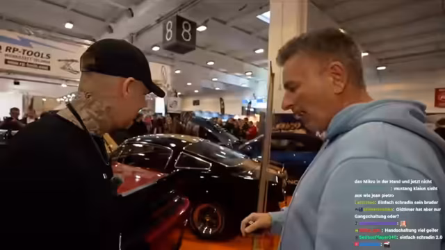 03:35:16Ein Höhepunkt des Rundgangs ist die Begegnung mit Sascha, dem Besitzer eines der drei Originalfahrzeuge aus dem Kultfilm 'Manta Manta'. Sascha erklärt, dass es sich um den Wagen handelt, der für die schnelleren Rennszenen verwendet wurde und eine bewegte Geschichte hat. Der Wert des Fahrzeugs wird als unbezahlbar eingeschätzt. Anschließend treffen sie auf Hakan, einen bekannten Mercedes-Tuner, der unter anderem den Wagen aus dem Film 'Training Day' umgebaut hat und eigene Breitbau-Mercedes-Projekte mit Sternenhimmel-Interieur vorstellt. Die Gespräche drehen sich um seltene König-Umbauten und die Herausforderungen bei der Beschaffung und dem Umbau solcher Fahrzeuge. Die Wertschätzung für die Handwerkskunst und die Exklusivität dieser Umbauten wird deutlich, während die Messe langsam dem Ende zugeht.