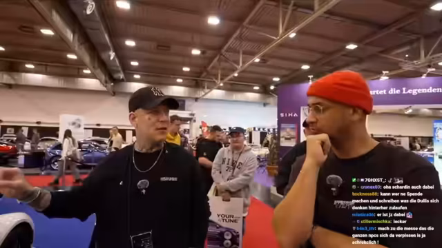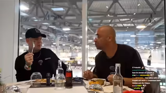 01:50:09Es wird eine Essenspause eingelegt, da Hunger aufkommt. Die Streamer überlegen, Burger und Pommes zu essen. Die Flexibilität des Streamers wird hervorgehoben, da sein Team oft nur eine Stunde Zeit für ihn einplant, er aber gerne länger bleibt, wenn er Spaß hat. Es wird besprochen, wie der Stream während einer Essenspause gehandhabt wird, wobei die Möglichkeit besteht, mit dem Chat zu interagieren. Die Idee, einen Livestream aus der Werkstatt zu machen, wird diskutiert, jedoch als unpraktikabel und störend für die ernsthafte Arbeit abgelehnt. Die Zuschauerzahlen werden thematisiert, wobei festgestellt wird, dass Live-Events wie die Motor Show mehr Zuschauer anziehen als Gaming-Streams. Die Messe wird als spektakulär empfunden, obwohl sie am Pressetag noch leer ist. Es wird eine Möglichkeit gesucht, sich in einem VIP-Bereich hinzusetzen, da es draußen regnet und kalt ist.