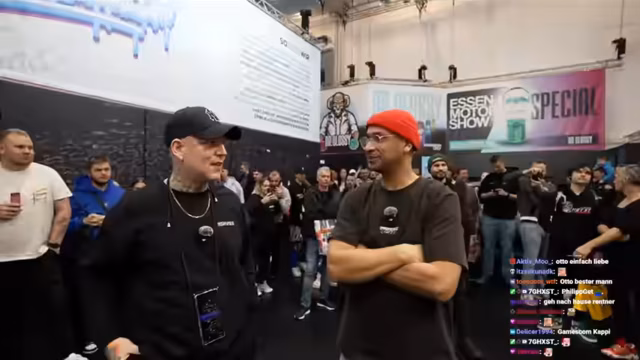 00:07:38Ein herzlicher Willkomsgruß wird an die Zuschauer gerichtet, gefolgt von einer ersten Korrektur der eigenen Aussage über die Stadt Essen. Die anfängliche negative Beurteilung wurde revidiert, und die Stadt wird nun als wirklich unfassbar hässlich beschrieben. Montana Black begründet seine Anwesenheit am Freitag als Pressetag, ähnlich wie bei der Gamescom, in der Hoffnung, weniger Publikum vorzufinden. Das Hauptziel des Streams ist die Begegnung und der gemeinsame Rundgang mit Jean-Pierre Kraemer. Black äußert sich sehr gespannt auf die Messe, die er als die größte Automesse Deutschlands bezeichnet, und freut sich besonders auf den Expertenwissen von Kraemer, den er im Vergleich zu sich selbst als Sonderschüler im Autowissen beschreibt.