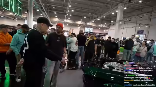 00:13:03Nach dem Betreten der Messehalle fällt MontanaBlack sofort ein McLaren ins Auge, den er optisch als 'Leckerli' bezeichnet, obwohl er vom Sound des Modells enttäuscht war. Er fragt den Chat nach dessen Meinung zu McLaren. Kurz darauf entdeckt er einen 720S und einen 900S SCC500 und fragt nach dem Unterschied zwischen den Modellen. Er äußert sich zufrieden mit seinem Porsche und Lambo, würde aber auch einen McLaren nicht ablehnen. Er erwähnt, dass er gestern seinen Kontostand überprüft hat und theoretisch noch Geld für ein Auto übrig wäre. Bevor er sich jedoch einen weiteren Sportwagen zulegt, würde er sich lieber einen alten Mustang mit einem 'geilen, asozialen, widerlichen Drecks V8-Geblubbere' zulegen.