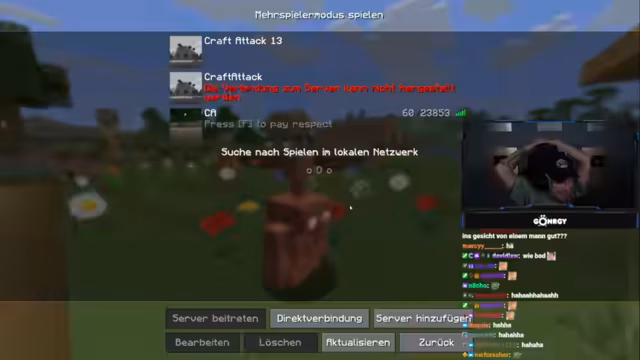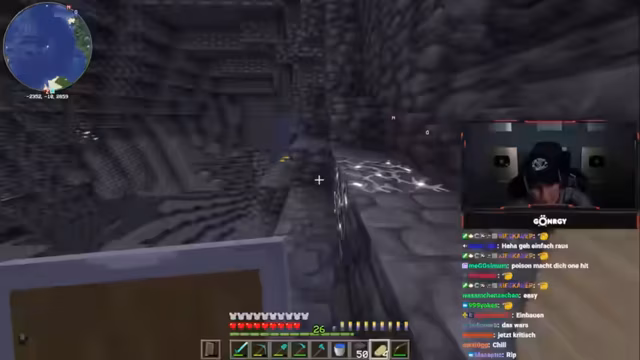 01:24:06Nachdem der Streamer eine enorme Menge an Diamanten in einer Höhle entdeckt hat, verliert er den Überblick und stirbt. Er versucht verzweifelt, zu seinem Todespunkt zurückzukehren, um seine verlorenen Items, darunter über 100 Diamanten und eine komplette Diamantrüstung, wiederzuerlangen. Die Zeit drängt, da die Items nach fünf Minuten despawnen. Er kontaktiert Stegi um Hilfe, lehnt diese jedoch ab, da er die Herausforderung selbst meistern möchte, um sich als 'echter Minecraft-Profi' zu beweisen. Trotz der Unterstützung des Chats und der Versuche, sich zu orientieren, verliert er den Todespunkt aus den Augen und muss feststellen, dass alle Diamanten und seine Ausrüstung verloren sind. Dies führt zu großer Enttäuschung und Frustration.