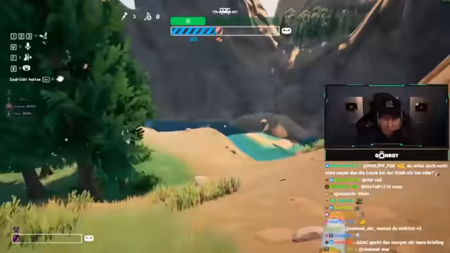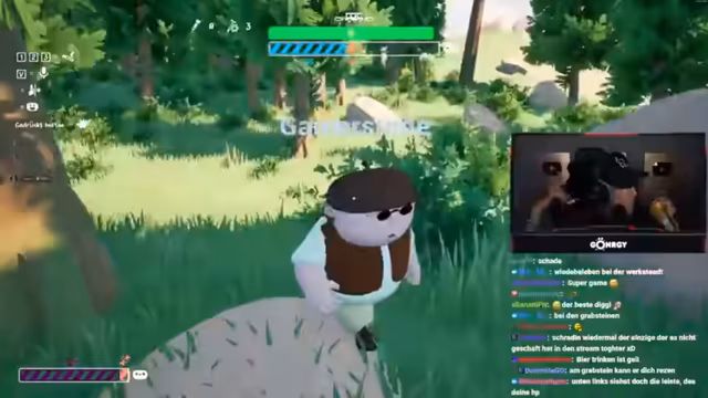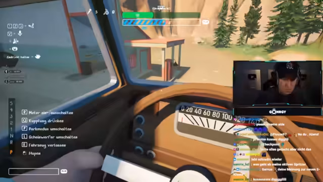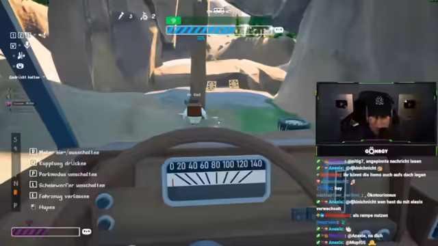 03:56:37Der Stream beginnt damit, dass die Gruppe ein Fahrzeug nutzt, um eine virtuelle Karte zu erkunden. Nach einem Startproblem versucht Schradin, alleine zu fahren, wird aber von den anderen aufgehalten. Zarbex und GTime helfen dabei, notwendige Materialien wie Bretter und Seilwinden aufzusammeln, die für die weitere Reise über unwegsames Gelände benötigt werden.