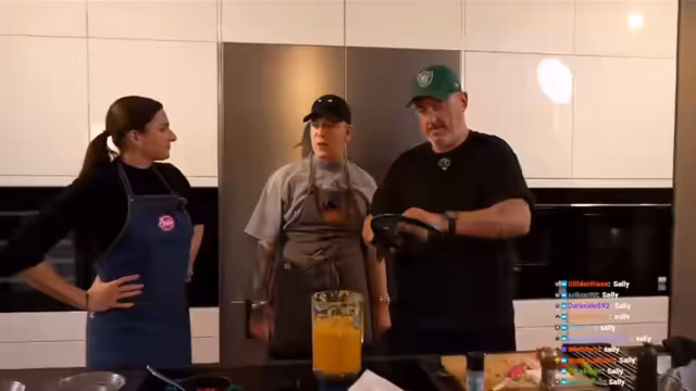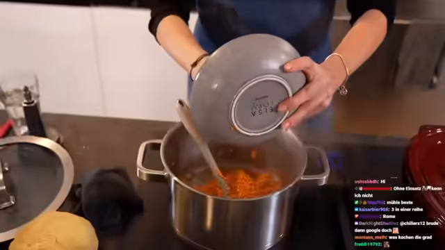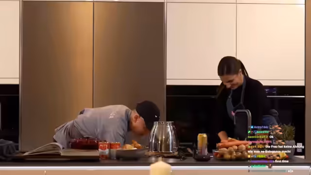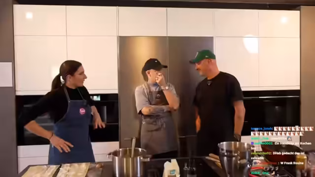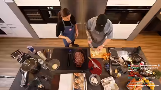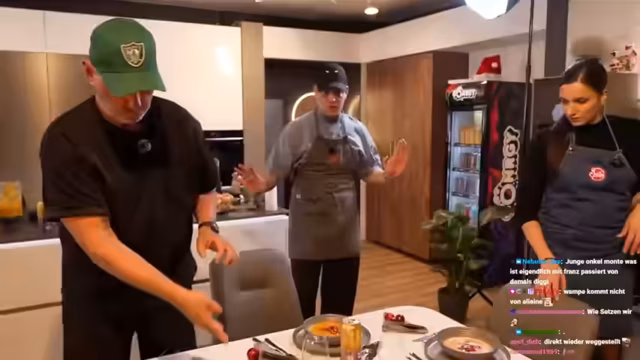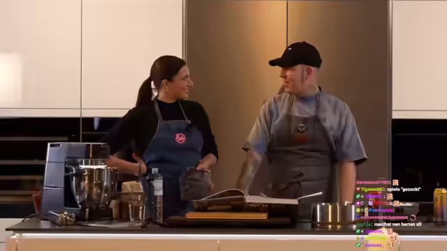 00:16:22Bevor mit dem Kochen begonnen wird, erzählt der Streamer eine amüsante Anekdote über ein Missverständnis mit Frank Rosin, bei dem er versehentlich zu dessen Privatadresse statt zum Restaurant gefahren ist. Diese Geschichte sorgt für Heiterkeit und zeigt die menschliche Seite der Beteiligten. Anschließend wird mit der Zubereitung der Schokoladentarte begonnen, da diese die längste Backzeit hat. Die Zutaten werden abgemessen und in einer Küchenmaschine zubereitet, die später verlost werden soll. Der Streamer, der sich als unerfahren in der Küche bezeichnet, wird von Sally angeleitet, was zu einigen lustigen Momenten führt, wie dem Herausnehmen von Eierschalenstücken. Die Interaktion mit dem Chat bleibt lebendig, und es werden Fragen zu Kochgewohnheiten und persönlichen Vorlieben gestellt, wie zum Beispiel die Liebe zu weißer Schokolade aufgrund von Kindheitserinnerungen.