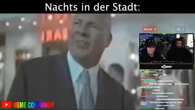 02:00:40Die Hauptunterhaltung ist eine „Nicht-Lachen-Challenge“, bei der Ali und der Streamer versuchen, Clips von Knossi anzusehen, ohne lachen zu müssen. Pro Lachen spendet derjenige einen Betrag für den guten Zweck. Die Clips variieren und umfassen verschiedene Situationen, von obskuren deutschen Memes über Poker-Highlights bis hin zu grenzwertigen Inhalten. Der Streamer macht die Challenge zu einem persönlichen Duell und provoziert Ali bewusst. Nach der Challenge besprechen sie die Clips und teilen ihre Favoriten.