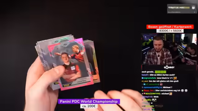 01:47:49Es wird überlegt, eine Dartbox zu öffnen, mit Spieler wie Luke Littler, der Back-to-Back-Weltmeister wurde. Darts werden als sehr beliebt bei Sammlern beschrieben, mit einer starken Zielgruppe in Deutschland. Phil Taylor wird als Legende genannt. Ein Update zum Wert der Dartboxen zeigt, dass die Karten von Michael van Gerwen (Bullseye) einen Wert von etwa 200-400 Euro haben. Die NBA-Box BreakerDelight wird als übermächtige Variante vorgestellt, die Cooper Flagg als Rookie-Autogramm enthält und in den nächsten Minuten geöffnet werden soll. Ein Partner, Tido, hat die Box bereitgestellt, was als Ehrenaktion bezeichnet wird. Der Streamer Marcel und Luca werden als gemeinsame Teilnehmer des Streams genannt, mit einer Partnerschaft für den gemeinsamen Stream.