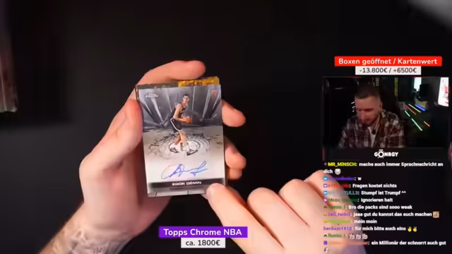 00:10:15Der Streamer stellt weitere Produkte vor, die geöffnet werden, darunter die NBA Breaker Delight, bei der eine Superfractor-Karte von Cooper Flagg für 1,2 Millionen Euro angeboten wurde. Außerdem wird die Hattrick Box erwähnt, die etwa 1,3 bis 1,5 Millionen Euro wert ist und entweder eine Patch-Karte oder ein Triple-Autogramm garantiert. Es folgt die Erwähnung einer geplanten, aber leider nicht durchgeführten Live-Öffnung beim Franz-Beckenbauer-Cup in München, was als verpasste Gelegenheit bedauert wird. Die Faszination für das Sammeln von Relics wie Schnürsenkeln von Fußballern wird angesprochen.