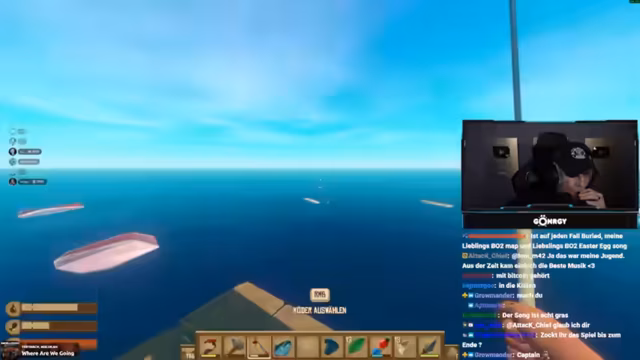 04:19:30Nach den Gaming-Gesprächen wird der Fokus wieder auf das aktuelle Spiel, Raft, zurückgebracht. Das Ziel ist es, zur nächsten großen Story-Insel zu segeln. Bevor die Fahrt angetreten wird, werden dringend Vorräte an Lebensmitteln und Ressourcen wie Holz und Schrott benötigt. Es kommt zu kleinen Verwirrungen über die genauen Ziele und die Wege auf dem Floß. Die Zusammenarbeit im Team zeigt hier Schwächen, da wichtige Fragen offen bleiben und nicht alle Mitspieler auf dem gleichen Stand sind. Gleichzeitig werden zukünftige Pläne wie ein Mario-Kart-Turnier in einer Woche angekündigt.