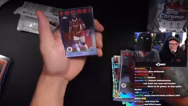 03:52:47Das Ziehen aus der Topps Chrome Serie blieb trotz der hohen Erwartungen defensiv, mit nur wenigen erwähnenswerten Karten. Der Streamer beschrieb das Gesamtergebnis bislang als 'Mülltonne' und 'mieser als bei dir'. Dies führte zu schnelleren Öffnungsritualen, um den Stream dynamischer zu gestalten, und interaktiven Elementen wie einem 'Ohrenschnipser' für jedes gefallene Wort 'Community'.