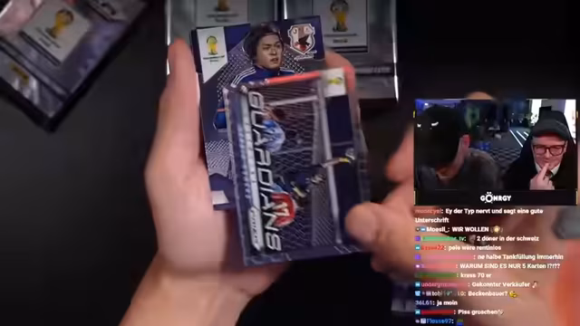05:06:46Den Abschluss des Streams bildet die Eröffnung einer hochwertigen Panini World Cup Box aus dem Jahr 2014. Diese Box wird als besonderes Novum dargestellt, da sie den Übergang von einfachen Sammelkarten zu professionellen, signierten Karten markiert. Der Streamer äußert große Hoffnung auf wertvolle Karten von Superstars wie Lionel Messi und Cristiano Ronaldo, deren Gold-PSA-10-Karten einen Wert von bis zu 522.000 Euro erreichen können. Das Opening wird jedoch als sehr enttäuschend und ohne große Banger-Karten beschrieben, was den Streamer frustriert.