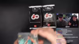 02:52:00Die Streamer öffnen eine exklusive 'Breakers Delight Box' von Topps, die speziell für Streamer erstellt wurde und normalerweise nicht frei käuflich ist. Jede Box enthält nur ein Päckchen, aber garantiert zwei Unterschriften und besteht ausschließlich aus nummerierten Parallel- und Insert-Karten. Das Hauptziel ist das Ziehen einer 'Marks of Excellence'-On-Card-Unterschrift, die eine der begehrtesten Chase-Karten der Serie darstellt. Es werden einige interessante Karten wie Nicolo Barella (1 von 5) und Cole Palmer (nummeriert auf 25) gezogen, die jedoch den erwarteten 'Banger' vermissen lassen.