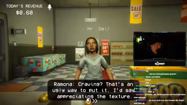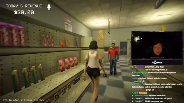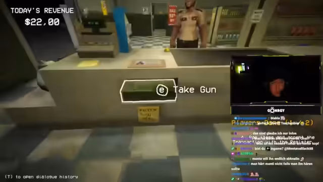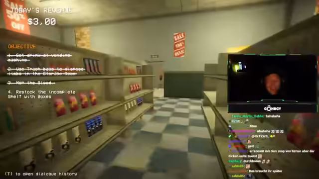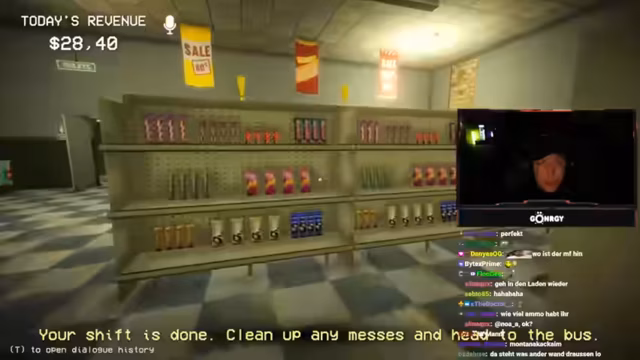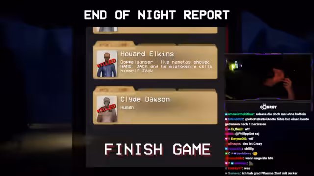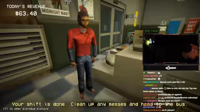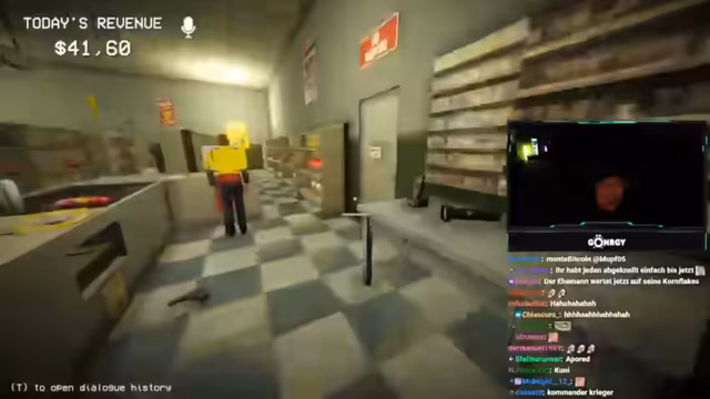 03:01:16Die Spieler erleben ihre ersten Kundenbegegnungen, die schnell chaotisch werden. Bei der ersten Kundin, die als Doppelgängerin entlarvt wird, kommt es zu einer impulsiven Erschießung, die zu einer Sauerei im Laden führt. Der Streamer entschuldigt sich für das unkorrekte Verhalten und die daraus resultierende Arbeit. Kurz darauf entlarven sie eine weitere Kundin, die sich als Stewardess ausgibt, aber Olivenöl um 3 Uhr nachts kauft und sich als 30-jährig ausgibt, obwohl sie laut Geburtsdatum 19 ist. Diese Inkonsistenzen führen zur Erkenntnis, dass es sich um einen Doppelgänger handelt, der ebenfalls erschossen wird. Die Spieler sammeln die Leichenteile ein und putzen das Blut weg. Eine Lieferung trifft ein, die auch Bärenfallen enthält, was auf zukünftige Bedrohungen hindeutet. Die Spieler erkennen, dass sie präziser vorgehen müssen, um nicht unnötig Chaos zu stiften und die richtigen Entscheidungen zu treffen, da Fehlentscheidungen direkte Konsequenzen haben.