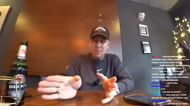 00:00:00Der Livestream beginnt mit Montanablack88, der die Zuschauer begrüßt und humorvoll auf mögliche rechtliche Konsequenzen seiner Äußerungen anspielt. Er akzeptiert sportliche Herausforderungen, betont aber, dass er für eventuelles Chaos nicht verantwortlich ist. Es folgen kurze Interaktionen, bevor er auf Kommentare im Chat eingeht, einschließlich kontroverser Äußerungen bezüglich Beleidigungen und Müttern, die er jedoch ablehnt. Er erwähnt den Inhalt einer Kiste, die er später öffnen wird und geht auf Zuschauerfragen ein, wobei er sich spontan keine Antwort auf eine spezielle Frage einfällt. Abschließend im ersten Abschnitt bellt er wie ein Wolf auf Aufforderung des Chats.