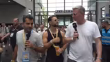 02:38:18Der Streamer führt durch die Eventfläche und interviewt verschiedene prominente und interessante Gäste. Er trifft auf den mit 2,24 Meter größten Mann Deutschlands und spricht über die Herausforderungen, die mit dieser Körpergröße verbunden sind, wie z.B. die passenden Autos zu finden. Des Weiteren werden die bekannten Grill-YouTuber 'Die Sizzle Brothers' begrüßt. Der Streamer drückt seinen tiefsten Respekt für ihre Arbeit aus, bezeichnet sie als Instanz im Grillen und kritisiert, dass deren Kanal nicht mehr Follower hat. Es werden gemeinsame Erlebnisse und zukünftige Kooperationen erwähnt.