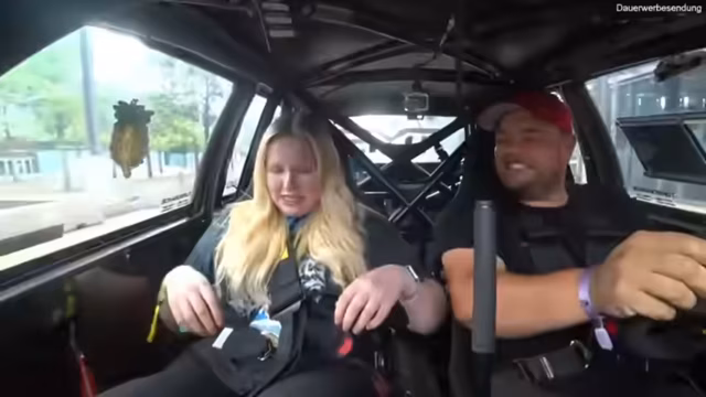 05:11:35Die ersten Fahrer steigen in die extrem leistungsstarken Autos und erleben die gewaltige Beschleunigung. Ein Fahrer beschreibt das Gefühl als unbeschreiblich, füllend und grenzwertig, und vergleicht es intensiv mit anderen Erlebnissen wie Achterbahnen oder dem Militär. Das Fehlen von Airbags und die pure rohe Kraft sorgen für eine Mischung aus Angst und purer Freude. Beobachter wie Schradin, der mitfährt, zeigen Panik und Begeisterung zugleich. Der Stream zeigt live die Reaktionen im Auto und unterstreicht, dass dieses Erlebnis ein absolutes Muss für jeden Motorsportfan ist.